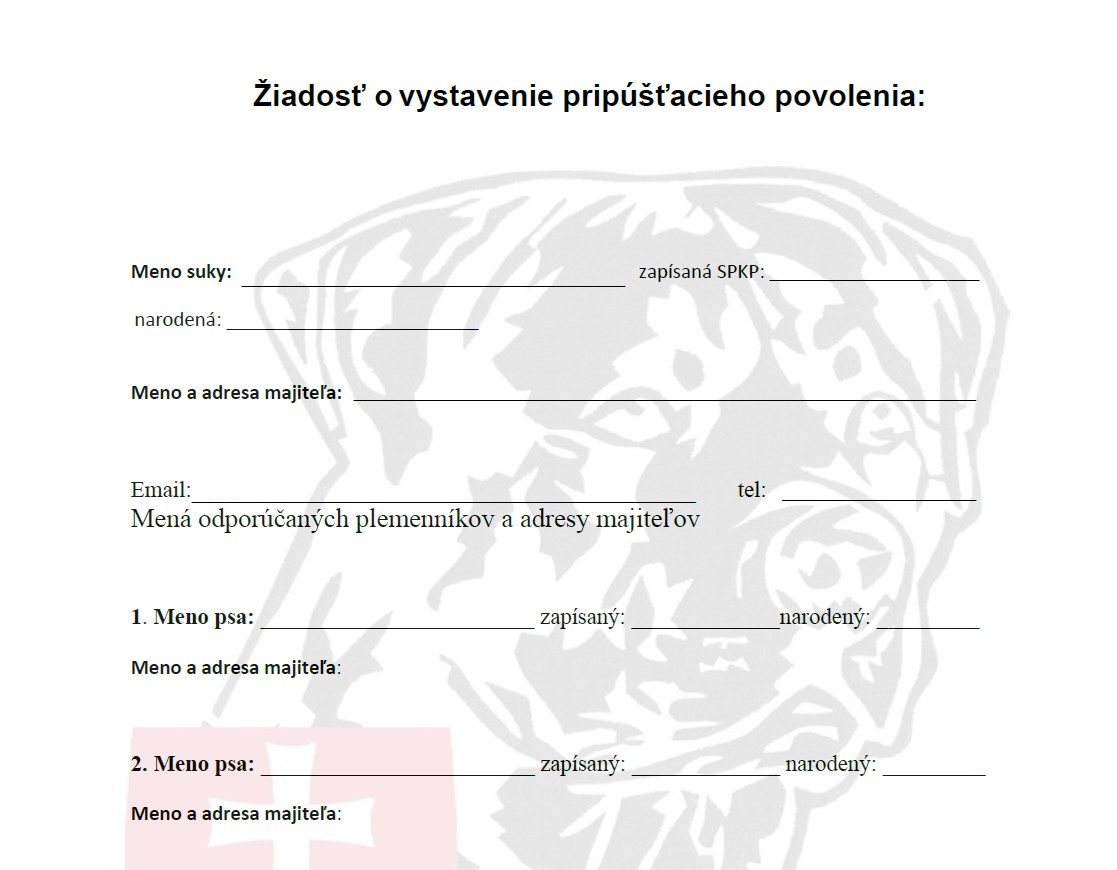predtým, ako si vyžiadate pripúšťacie povolenie, je potrebné vyplniť Žiadosť o vystavenie pripúšťacieho povolenia, ktorú následne odošlete e-mailom hlavnému poradcovi klubu Ladislavovi Kiššovi alebo Martinovi Šípkovskému.